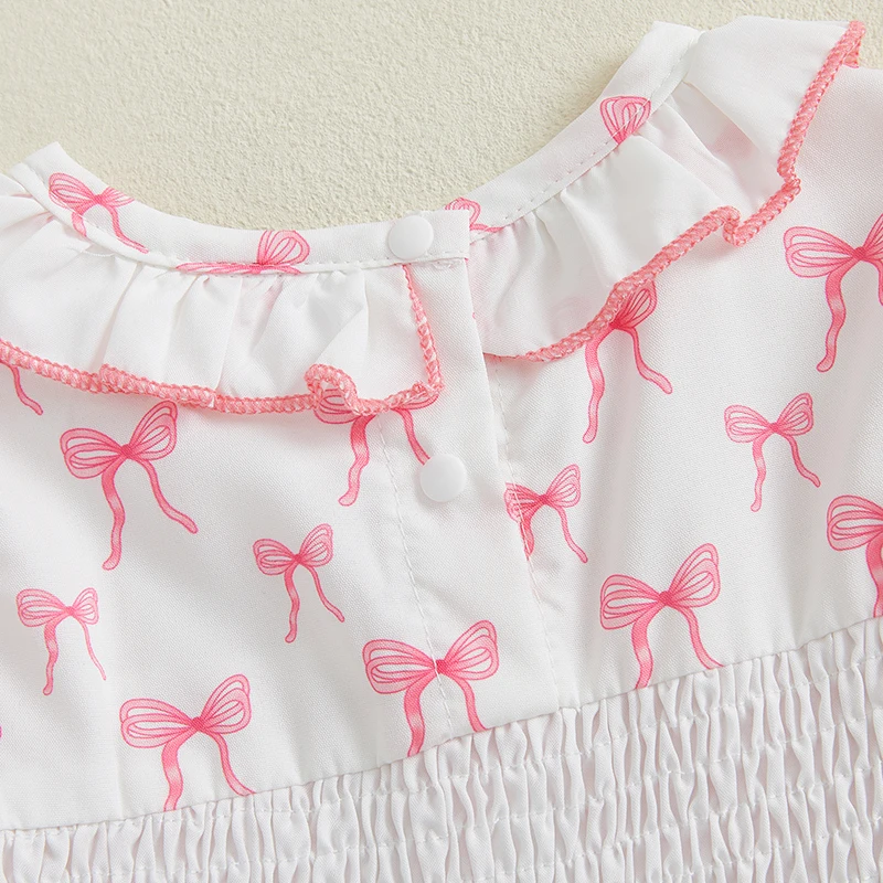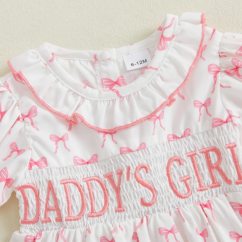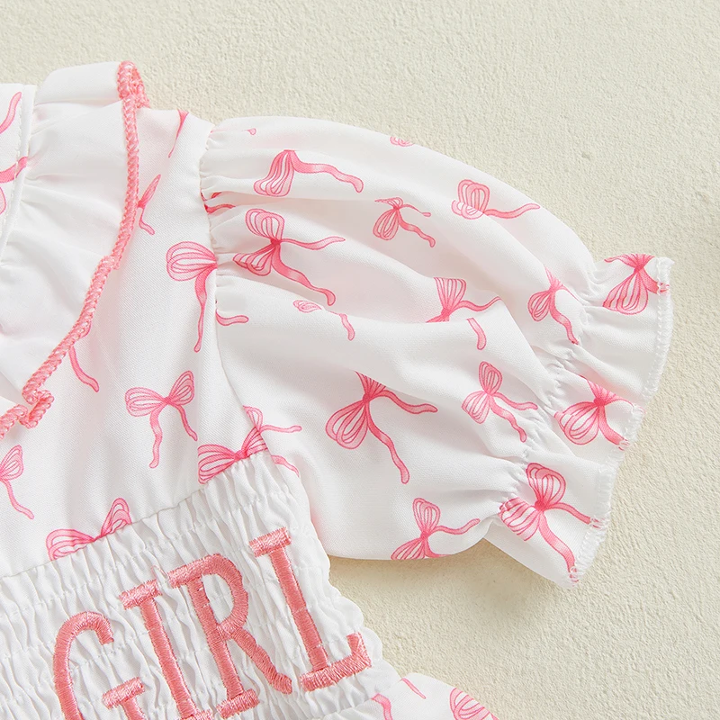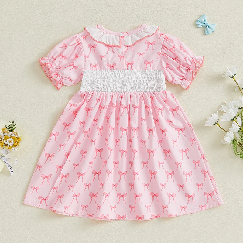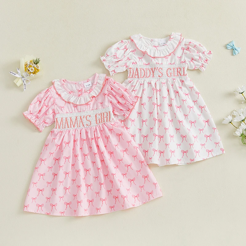 Toddler Baby Girl Summer Dress Bow Letter Ruffle Trim Round Neck Short Sleeve A-line Princess Dress Summer Clothes