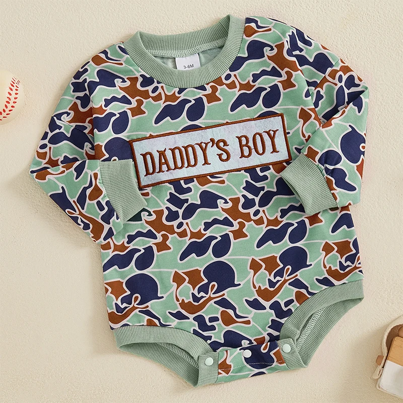 Baby Boys Autumn Jumpsuit Long Sleeve Crewneck Casual Camouflage Romper